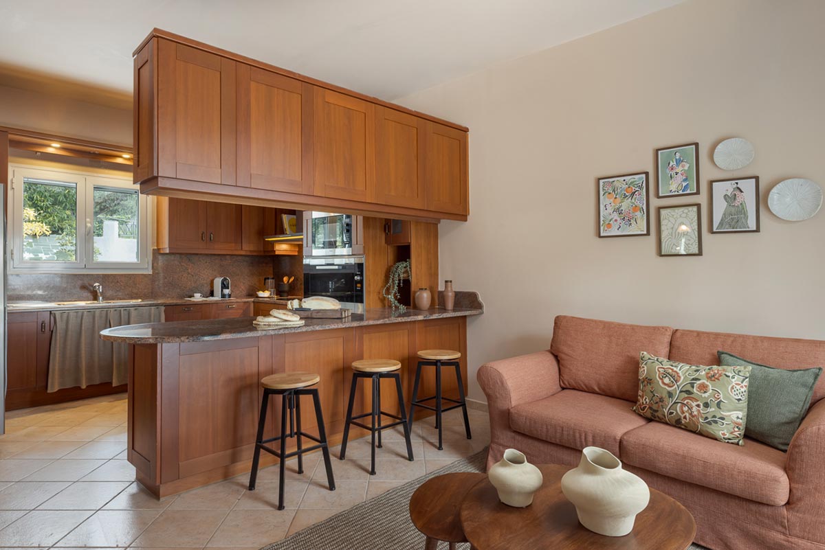 Days unfold gently between the shaded terrace, the pool, and the comfort of the villa’s living spaces. Whether exploring nearby villages, discovering hidden beaches, or simply enjoying the rhythm of the island, Casa Mila offers a peaceful base for experiencing Kefalonia at your own pace.